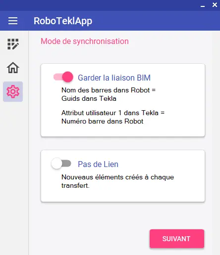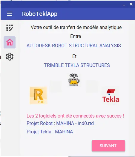 Oui. RoboTeklApp permet l’import Robot vers Tekla et l’import Tekla vers Robot. Il suffit d’utiliser le bouton switch pour changer le sens du transfert.